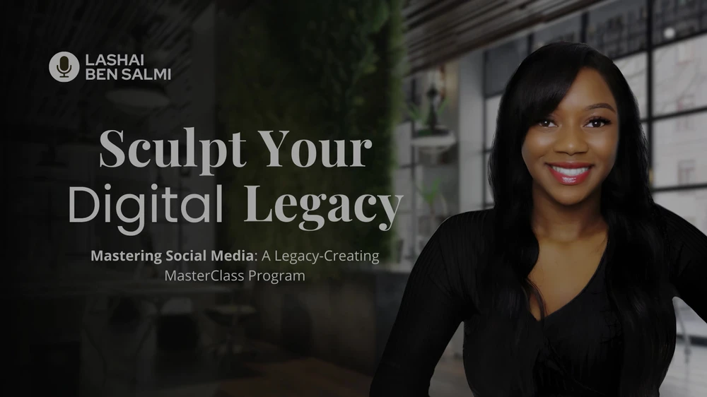 People connect through stories, so are you ready to share your story with the world?.. Welcome to Mastering Social Media: A Legacy-Creating MasterClass. My name is Lashai Ben Salmi and I'm honoured to embark on this transformative journey with you. This program is a culmination of my journey as an award-winning Founder, TEDx speaker, Author, and content creator, Who has garnered millions of views and continues to support leaders, creator and leading organisations to authentically tell their stories online. Over the years we as a platform have studied and analysed the power of social media to build impactful legacies, and now, I'm thrilled to guide you through a bespoke, seven-part program. By mastering authentic storytelling, navigating diverse platforms, fostering genuine engagement, establishing authority, monetizing impact, and crafting a lasting legacy, you'll unlock transformative outcomes—expanded influence, thriving communities, diversified income streams, and a legacy that resonates through time. Get ready to embark on a journey that transcends digital landscapes and leaves an indelible mark on generations to come. Welcome to a legacy creating MasterClass.